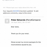 The support was very poor and the parcel was only delivered after I personally contacted the courier directly to sort out the problem. Parcelcompare support team emailed me to help solve the problem 3 days after the parcel was actually delivered, (which means they had no idea where item was), and the parcel was only delivered because I spent 30 minutes on the phone with the courier firm directly.