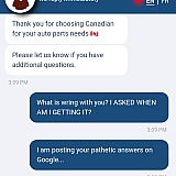 Overall I am extremely disappointed with the service that this Canadian company has provided. I will be going back to RockAuto from this point on.