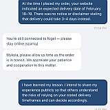 Extremely poor service and unacceptable delays in delivering the parts, which caused me a financial loss. No compensation was offered, and I strongly do not recommend this service to anyone