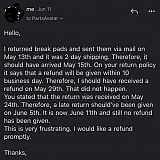 Purchased rear calipers, they arrived fast, but returning is being a nightmare. On their site, it's specified 10 business days. I reached out after they had passed and was told that due to covid it would be 20 days. Yesterday 20 days passed as well. In chat, they kicked me to return department where I assume bots are answering. They requested me to wait and co-operate with them without any clear dates! After the question how long it's gonna take, their response was uselessly the same.