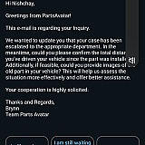 Correct parts and timely delivery is most important. Parts Avatar does not disappoint