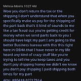 Ordered parts from these people. They didn't come. I reached out and they said they would create a ticket. They got back and said... Oh, it's all been delivered. I asked for the tracking number with USPS, and they gave it.