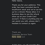 Want better customer satisfaction and response, then use anyone and i eman anyone else www.rockauto.com www.carparts.com www.a1auto.com... endless other ones. But partsgeek is a crock of $#*!