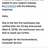10/31/19... I replied to this email asking to wait patiently, 24 to 48 hours response... email was sent on Monday and is now Thursday... I just received notification to expect another 24 hours to 48 hours. I try to call, wait 10 minutes without any responses... their return team really sucks more than ever.