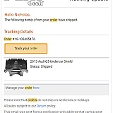 The following item(s) from your order have shipped.