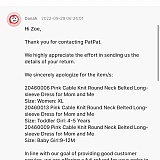 Please know that we’ve been working to improve both sizing accuracy and quality control, while also strengthening our communication systems to ensure customers receive timely order confirmations and updates. Our customer support team has also been trained to step in quickly to resolve issues and provide clear next steps.