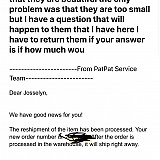 I accidentally ordered the wrong item and their customer service rep Susie B. Answered my email very quickly, was kind and helpful.