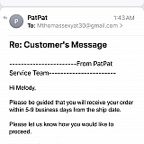 Pearl B. Provided excellent customer service. Quick response time and appropriate solution to questions. Will use Patpat again!