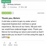 The order did take a while considering i asked for Express Shipping.The experience was still great and i love all my product. The two items i couldn't fit, Melvin credited my account for them and handled my retrun very fast!
