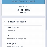 Sir, I transferred the money to the bank on 14 May. So far, Pending is telling.Sir, I transferred the money to the bank on 14 May. So far, Pending is telling. Manish Kumar Customer ID*******