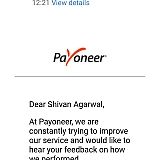Answer: Hi there, I am sorry to hear about this. Please provide the ticket number associated to the email correspondence you had with our Support center. If you are unable to locate this number, please provide your customer ID and email associated to your Payoneer account. Thanks, The Payoneer Team