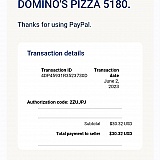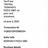 I purchased pizza for $30.32 on Friday June 2,2023 through an app, and I used PayPal to pay. I received e-mail confirmation for said purchase that night.