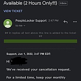We appreciate your feedback in regards to our cancellation process. We have a few options to contact us when looking to cancel our email and chat options are 24 hours per day. The original email received was confirmation of your request and a special offer sent, your request was completed and a refund was issued as requested shortly after receiving the special offer. We regret to hear you did not locate the information you were seeking. PeopleLooker strives to update and expand our databases to provide the most current and accurate information possible.