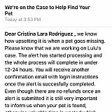 Will see how their service is but I have High hopes for the services. I hope petamberalert.com will aide in her return.