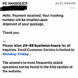 Recently placed an $800 order and received 1/8th of my shipment. Contacted them and they gave me a shipping number saying the remainder of the shipment will be in this package. Looked at the tracking number and it was the same one from the original shipment. Tried contacting them again and they will not reply to me. I have gotten many orders from them with no issue, however now they have burned me out of $700 dollars. Avoid PGANABOLICS, so this doesn't happen to you too.