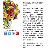 On the 19th of June, I have ordered flowers, to be delivered on the 20th of June. The delivery time was between 10 and 14. Half past twelve I received 5 emails that I need to send them my I'd and photo of the card. I called them and the girl with the very bad English answered. So after my call I send them all the information and started to wait for a delivery (WHICH NEVER HAPPENED!) after few hours, same date, 20th of July I called them again, the phone was blocked already, I started to right on the chat (their website), each answer took them 10-15 min! Was texting with them for one hour and did not receive clear answer. So I called to my bank and as the payment has been proceed less than 24h, the bank returned my money. So guys this company is 100% scammers!