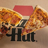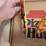 At the ripe old age of 55, I remember when Pizza Hut was actually good, not the skimpy, production line crap that it is now. I would rather lick the moist underside of a freshly peeled scab than waste my money on this typically, substandard relic of what Pizza Hut used to be. The slice on the left is their thin crust. Paper thin. If you doubled it up, it might pass for single ply toilet paper. The slice on the right is supposed to be "Hand Tossed". Still not as thick as a normal thin crust should be. I hand tossed it into the garbage. Neither pizza had any more sauce than if a parched Italian had sneezed on them. Don't worry Pizza Hut. You are not alone. None of the corporate franchise restaurants are worth the time it takes to puke up their food before it destroys our collective colons. You're in good company.