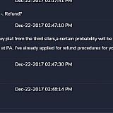 I purchased Platinum ( Warframe currency) from 2 buyers on the site. In the end, my platinum was taken back by seller. I asked for a refund and he said he has already filed refund procedures for me. That was in 16 dec 2017 and 22 dec 2017 where I was overseas doing it. Both said they has filed refund procedures but I haven't gotten any back. Then I tried to reach out to support and it does "not fall within the scope of support we are able to provide." Wow... Seriously? At the moment, Im waiting for the playerauction email to respond to my case on paypal. If no reply is seen, ill escalate it to paypal or even my bank.