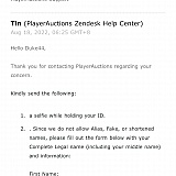 I placed a simple order for some in-game credits for a game that I didn't feel like grinding. The "verification" team emailed me asking for a copy of my ID, a "selfie" with my ID, a picture of my credit card and a picture of my credit card statement. This is absolutely outrageous, I can buy a Tesla with less verification. Buyer beware. Playerauctions advertised a 20 minute wait time for the credits, and then they made me go back and forth for hours trying to "verify" my identity in the most egregious way possible. Smells like identity theft to me.