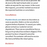Worst business I have ever dealt with. Ordered a unusual sized a/c register. After placing the order noticed that it would take over 20 days for the item to even ship to my house. Contacted plumbers stock and they informed me that they cannot cancel the order cause it was already placed with the manufacturer. I recited their refund and exchange policy to them which clearly states, " Orders can be cancelled at anytime before shipment. To cancel your order, please contact our customer service department. There are no cancellation fees as long as the product has not been shipped. If the product has been shipped it cannot be cancelled. The customer will need to receive the item and follow the return policy.". So they then proceed to tell me they are rerouting the item to their store and then once it's received they will refund me my money. My refund has nothing to do with the item being sent to them, they can refund it without having the item based on their policy.