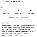 Most of the profiles either are blank as they're too lazy/dumb to fill in out or they have a huge list of requirements and a long list of complaints about life