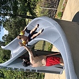 It's a breeze to setup with two strong people. Just follow directions and your ready for excitement. Tried with water hose. Just not enough water but once we added water from return it was a speedy fun slide. My 5 and 8 year old boys have just run in circles getting out of water and back ion it.