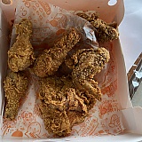 We got a 5 piece chicken tender. The tenders are so small they they are like a chicken nugget. They had just open and they taste like they were left over night. My husband order a 4 pcs the chicken is all dried up and they had just opened. Aw