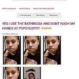 NASTY GIRL NAMED TAIESHA SPITS IN THE FOOD IN A SKIP DA GAMES AD FOR SEX. SHE IS A WORKER AT THE POPEYES IN WILSON NC ON RALEIGH ROAD.