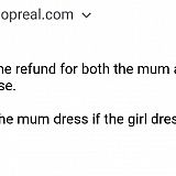 I bought two matching popreal mother and daughter dresses, weeks after my order I got an email from popreal saying the daughter dress is out of stock permanently. I asked for a refund on both the mother and daughter dress since I have no use for the mother dress without its matching daughter dress. Popreal refused because they said they have already sent the mother dress (I still haven't received it yet)! Now I would have to wait for it to arrive then pay for shipping back to get a refund, which is not worth the cost. In my opinion if a customer has bought matching items that are part of a set, they should not be shipped until all those items become available. The items are even pictured together in photos as you can see from the screenshot I have uploaded.