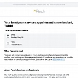 A porch handyman was able to mount my tv quickly and I booked the whole thing online. Would use this service again!