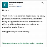 I recently used Poshmark for nine months. During that time it went smoothly and I sold numerous clothing items and had very good ratings and no complaints or returns. Then within one week four of my items were flagged as "offensive" (including a pair of brand new underwear which are absolutely permitted per the guidelines, as well as my profile/"Meet your Posher" listing) and then my account was restricted for listing "unsupported merchandise." I emailed three times asking why my items were flagged and which of my tems were "unsupported" but received only generic responses with absolutely no detail. In the last email, Poshmark said they won't even respond to any further inqueries. I have read through their list of prohibited items and cannot see why these items were flagged! Their complete lack of appeal process and refusal to even cite HOW I allegedly violated their terms is infuriating and an extremely poor business model. Anyone who chooses to use their site should be very wary as you can easily spend months or years building up your business only to have your account arbitrarily removed without explanation.