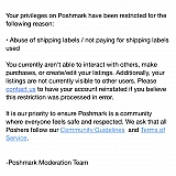 I ordered a pair of pants from Poshmark.com on 23Sept. 2021. The site wanted me to set up an acct. So I did. I placed my order paid then a few minutes later I got an email saying my acct has been restricted because of abuse of shipping labels. I don't know what that means. I have NEVER did business with Poshmark and NEVER will now.