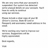 " We have checked some unusual details in your account and detected you as a