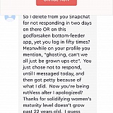 I'm a real person, using the free version of the app. Had been sparsely messaging a user when he asked to continue our messaging on snap chat, to which I told him I barely use. Fast forward two days later when user deleted me as a friend on snap, so I messaged him on PS. He was angry as how long it took me to respond and claimed that's why he had removed me. No big deal. We continue chatting then he sent me the most foul, rude and unnecessary message calling me names and being downright ugly to me for no reason other than he was angry? And then reported me. I tried contacting PS support to report him, instead I was suspended. I wrote to PS customer support to which I received: