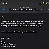 Nu moet ik het zelf nog maar een keer bestellen en bezorgkosten betalen, weer 2 weken wachten (terwijl ze ook een spoedservice hebben voor verzenden) en de kortingen die erop zaten kan ik ook vergeten!