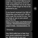 I have purchased a Free next day delivery royalty membership, ordered something on August, 11th and received a notification from Evri on August 12th that the items are with them and that I should expect a delivery shortly with more information. 2 WHOLE WEEKS LATER - STILL NO DELIVERY, OR UPDATE.