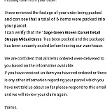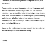 Part of my order didn't arrive. Thought it was going to be an easy process when they said they'd check CCTV footage of my order being packed. Instead I was basically called a liar and told I wasn't getting a refund or reorder and the decision was final and they wouldn't be revisiting my claim. They've just taken my money and are now ignoring my emails. So disappointed as I've been shopping with them for about 4/5 years with no problems. Now I know I won't ever be again.