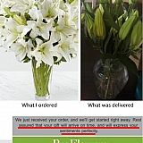 I do not explain much. Just see the attached photo. Did not get the flowers on time and did not get the flowers that was advertised. You judge from the pictures.