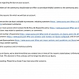 Quora is a good idea and some aspects of it are fun and informative. But the Moderation is brutal, broken, arbitrary, unresponsive, misguided and nonsensical. After using the site for months, I had a good following and about 650,000 views on my content. Then one day I got edit-blocked because Quora said I had multiple accounts which was wrong. I appealed and they apologized and restored my privileges. A week later, same thing, edit-blocked for having two accounts. I wrote again an appeal and asked them what was going on. They banned me for life. No explanation, no option, just bye-bye! You can't sign into your account, can't message any of the friends you've made goodbye. It's like this weird medieval excommunication. They don't care, there is no one to write or speak to, just a form response listing the possible things that get you banned and that you must have done one of them.