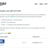 Recently, I listed a ~$173 Best Buy gift card to be sold by Raise after it was 'approved' by their screening process. Two days later, it was sold and I was sent a congratulations email. Great!