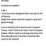 Having been bullied off this site once before for having a different opinion on Brexit, I returned using a different name. Total membership was 9 years but after being alerted to their latest policy, I am absolutely disgusted at their racist attitude towards white people! President Trump does NOT support white supremacy and nor do his supporters and I am livid to be placed in that category! I believe the Ravelry owners have been bought out by the likes of George Soros and this policy is a 'test' to see how Conservatives react to being banned, before Twitter, Facebook and Instagram do it! Vile people - account deleted! :(