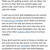 I've been ordering from Redbubble for years. Last year I purchased two phone cases which ended up being poor quality. I asked to send them back for a refund and was given two vouchers instead. Alright, that's fine. I tried to use one for a Christmas present and it didn't work, emailed redbubble and they told me they changed the voucher code format so my voucher wasn't valid. They issued a replacement which I was able to use with no issues. Here's the problem: