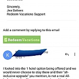 My experience with redeem vacations was great. I saved 400 dollars. They are the best. I will recommend this to all of my family members