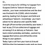 Packing and shifting was done by their team, once the luggage was shifted to their Godown, they called and told that 9 K will be charged extra from the agreed price as the luggage is more … their packing team will increase the number of cartons will fully just to charge extra …. Highly unprofessional and rude employees … pls don't get into their trap …