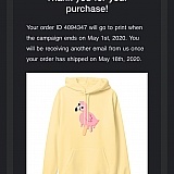 Placed the order on April 24th for this flamingo hoodie that my 10 year old had to have. It has been delayed multiple times! No updates on when I will receive and frankly this is not how business should be conducted. I want a full refund of my money! I have no merchandise BUT you have my money. Next I'm going to the better business bureau and file a complaint. I want my money refunded NOW for order #*******