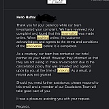 "We apologize for any inconvenience this may have caused. As a courtesy, our team has contacted our hotel partner on your behalf. They have informed us that they require a copy of your credit card charges in order to continue their investigation. Please reply to this email with the requested documentation so that we may continue assisting you with your refund request."