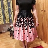 I loved the dress as soon as I got it! I tired it on straight out of the package and even then it looked lovely. I was surprised at how nice and full the skirt was, even without a petticoat. The material is good too. Most of the dress is made of a cotton (like most vintage dresses) but the waist ribbon and halter neck tie are made of a silky ribbon material, which adds a nice touch to the dress and glams it up a little.