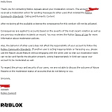 Hello there. I've been a Roblox player for around 8 years. You may be a parent or a kid reading this, but here we go... Roblox is a fun game. You can play tons of user generated games such as slap battles, brookhaven, you name it. But if you send even an emoji which is quote-unquote "inappropriate" then Roblox will hit you with a warning. Nothing crazy right? Wrong. Join back in that same server, say something completely normal, then instantly get banned for a day. That is what happened to me. I reached out to customer support, told them in full detail what happened, but they said they couldn't do anything because I did not own the account. I literally put the email as my personal email that I used for 2FA, but I guess that is not enough proof? They then stated that my ban was correct and they will not be making any justifications. Not only was it their fault that I got banned, they are saying that it is my fault for sending a normal emoji like the happy face. Outrageous.