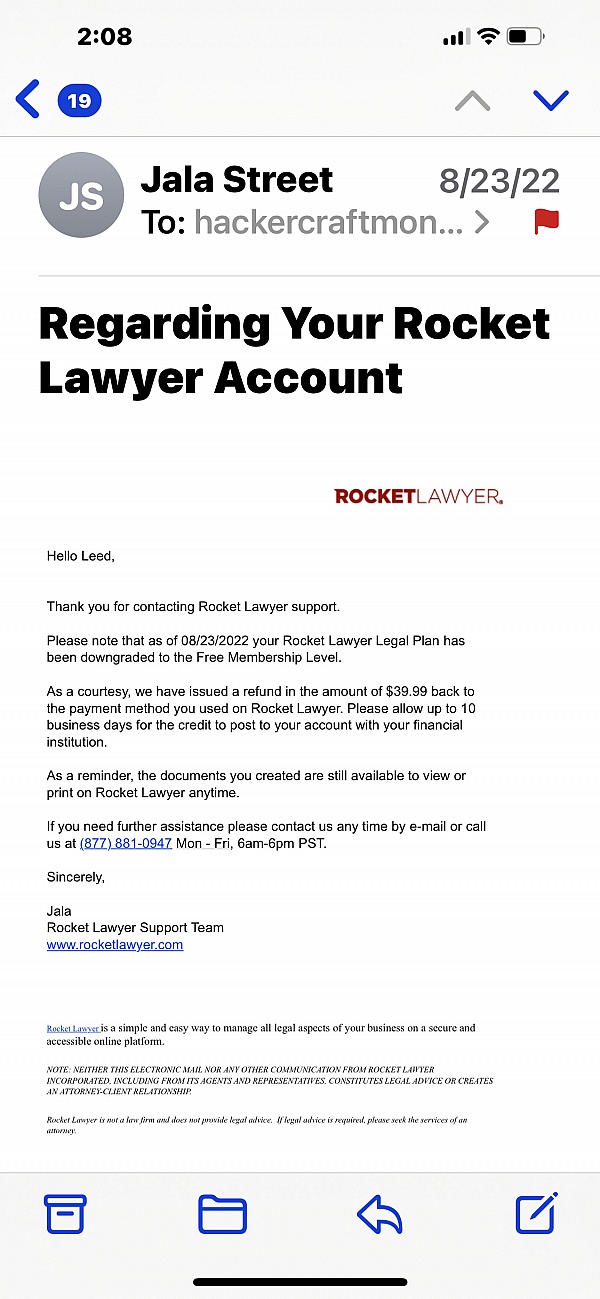 I want to sincerely recognize the Rocket Lawyer representative who assisted me — she truly went above and beyond. My experience started off frustrating after I was unexpectedly hung up on by a sales representative when I declined to provide my credit card over the phone. I simply wanted to proceed through the website so I could take advantage of the 7-day free trial and the $59 monthly payment option to pay the total amount. Instead of respecting that preference, the prior rep insisted I go through her and then abruptly ended the call, saying, "Hey Mr. Farrar, you're breaking up," before disconnecting.