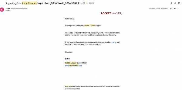 Everyone over the years have been very thoughtful and understanding what we needed I would highly recommend Rocket Lawyer